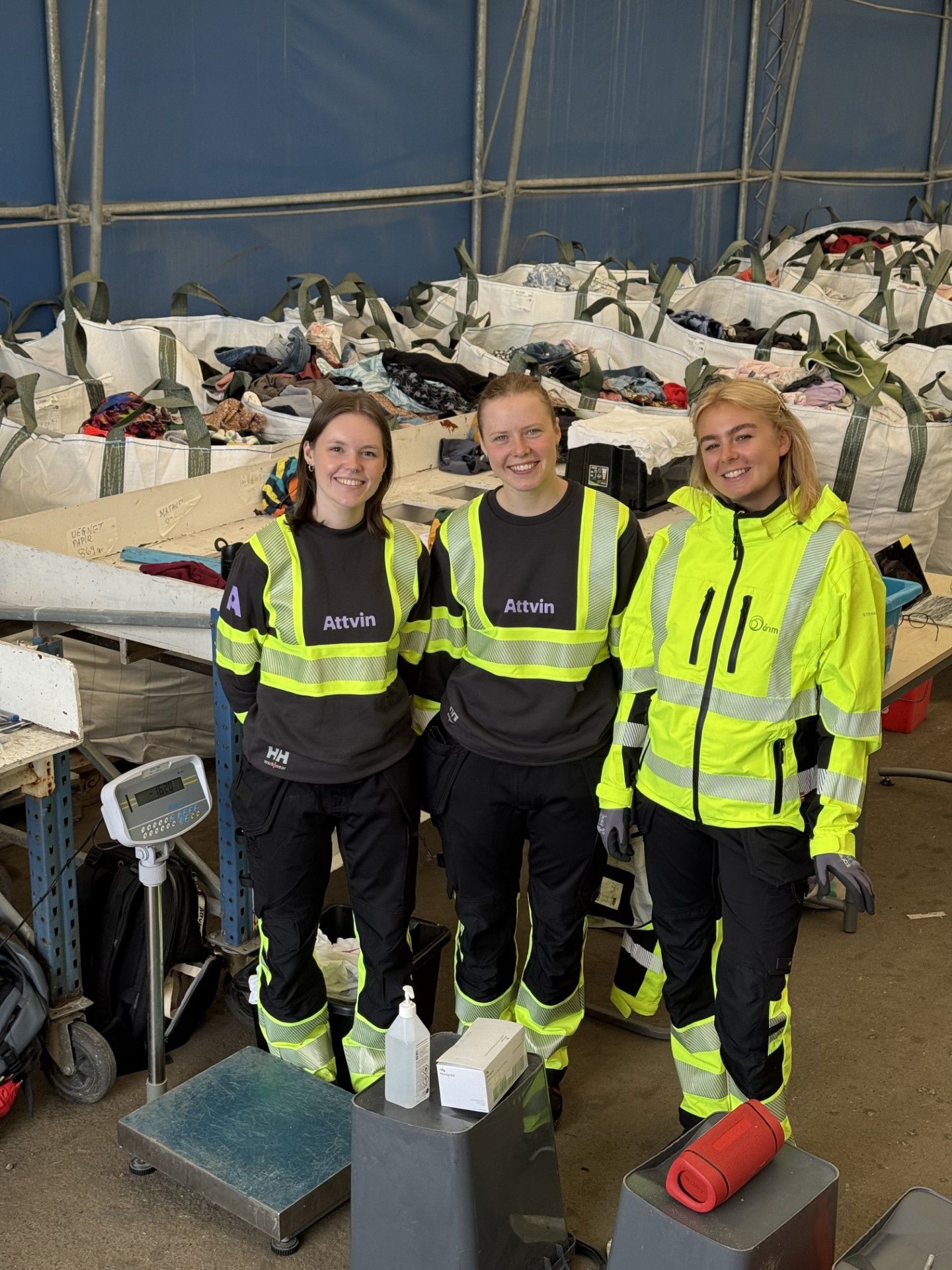 Gjenvinningsstasjonen Attvin IKS tok i sommer imot de tre NTNU-studentene Sunneva Grooss Gunnarsdottir, Silje Barstad Alnes og Bettina Amundsen Hermanrud. Der gjennomførte de en plukkanalyse av tekstilavfallet som har blitt levert inn på gjenvinningsstasjonen.